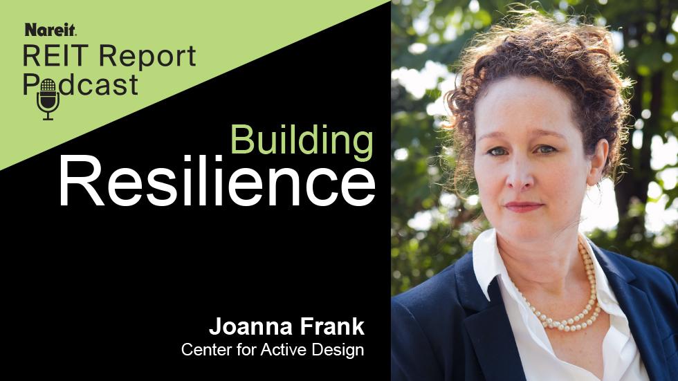 En este episodio de la serie especial REIT Report, “Building Resilience”, Joanna Frank, fundadora, CEO y presidenta de Center for Active Design, comparte cómo centrarse en la salud y el bienestar en el entorno construido generan resiliencia al centrarse en el impacto humano de los eventos climáticos extremos.