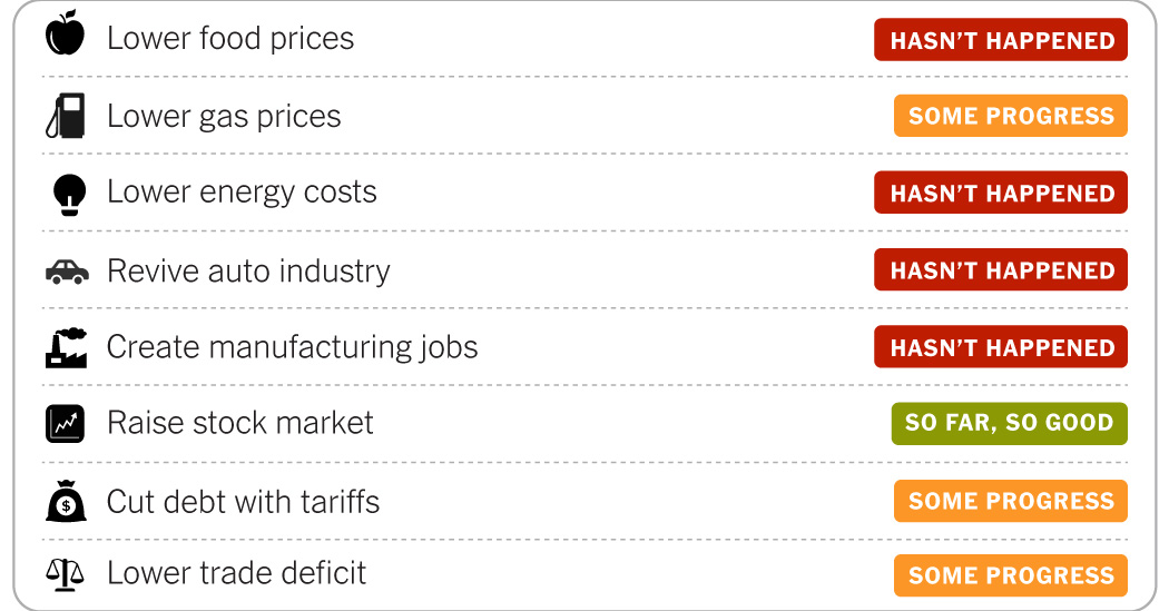 El presidente Trump hizo campaña en 2024 con promesas de “poner fin a la inflación”, recuperar empleos en el sector manufacturero y lograr un auge económico. Un año después de su regreso a la Casa Blanca, aún no ha cumplido esas promesas. Aún así, ha habido avances en algunas áreas y la economía ha demostrado ser sorprendentemente resistente.